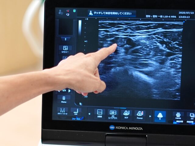 検査には、レントゲンや超音波(エコー)を使用。治療は、お薬や注射、電気・温熱などの物理療法、ストレッチなどの運動療法、生活のアドバイス、必要に応じて装具(サポーターなど)もご提案します。